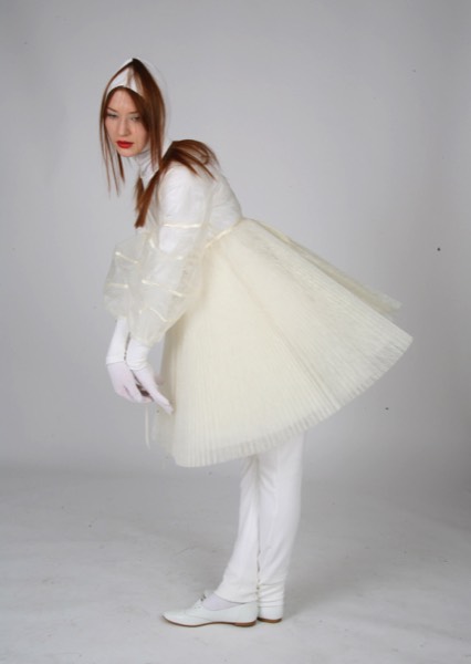 This collection exhibited for the first time at INDEX08 in Geneva is based on high performance durable and single-use nonwoven fabrics supplied by the nonwovens industry and incorporates developments in elastic film composites, thermo-active PCM’s, masterbatch additives, thermochromic finishes, electroconductive fabrics, high temperature protective fabrics, metallised and multi-layer spunbond laminates.